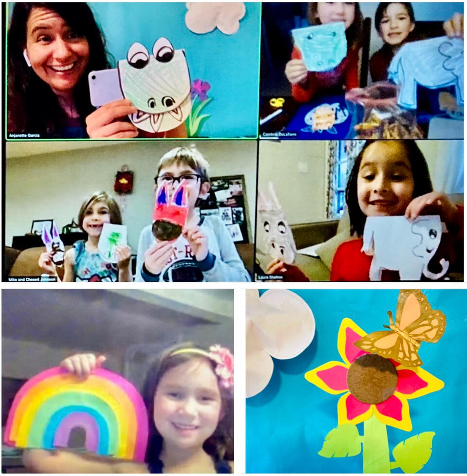 Each paper craft is mailed to your home and I guide each student on how to assemble their projects and add their own special creativity. This includes original spring themed pop-up cards, animals, puppets, and more!